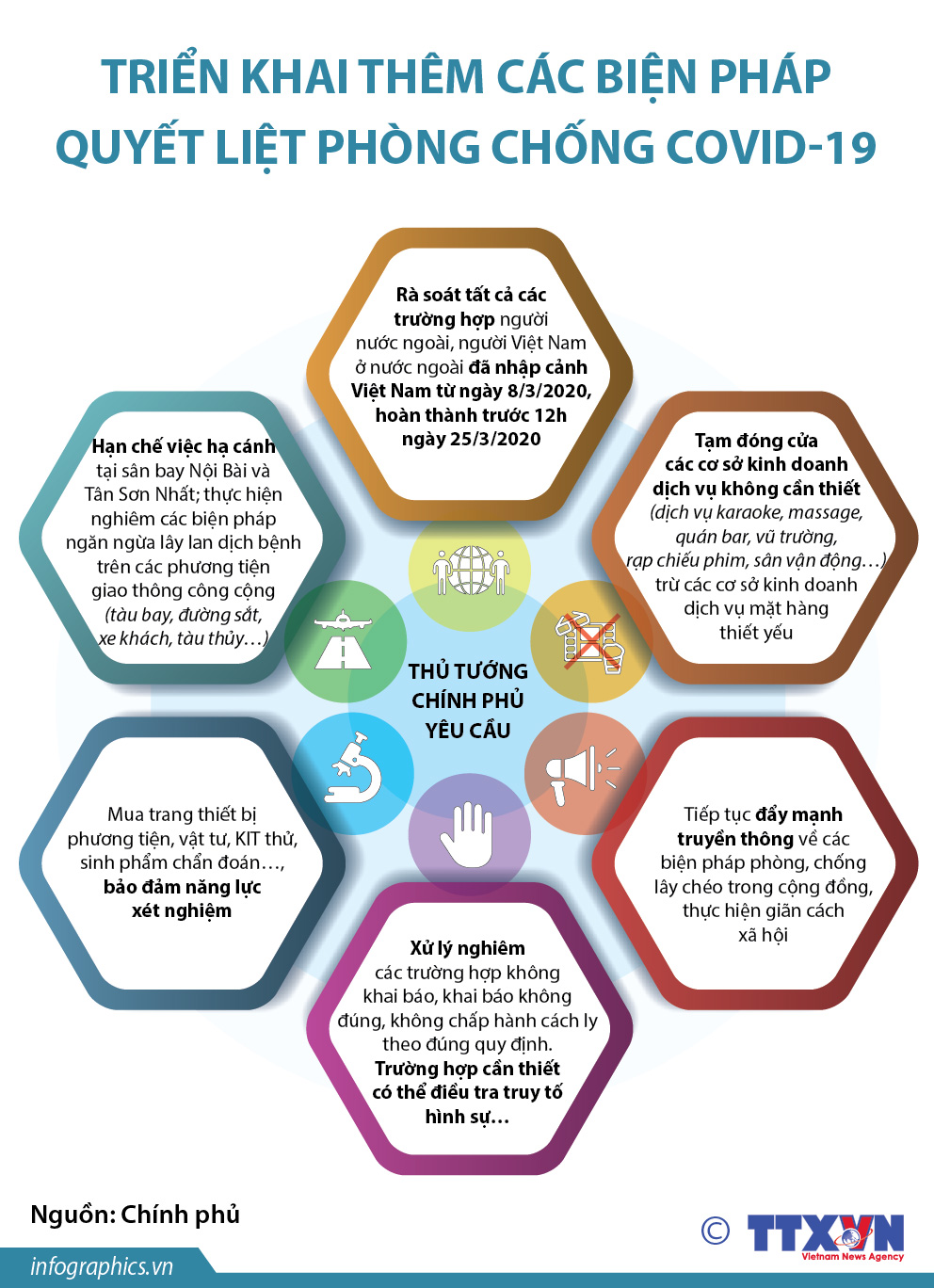 Công tác phòng, chống dịch COVID-19 ở Việt Nam đã chuyển sang giai đoạn 3 có ý nghĩa quyết định. Vì vậy, các ngành các cấp, cả hệ thống chính trị cần tiếp tục thực hiện quyết liệt, hiệu quả hơn nữa các biện pháp phòng, chống dịch; kiên trì các nguyên tắc: Ngăn chặn, phát hiện, cách ly, khoanh vùng, dập dịch, điều trị khỏi bệnh.